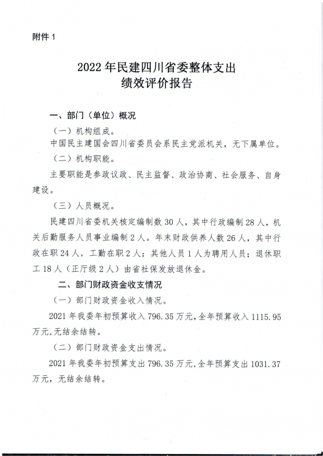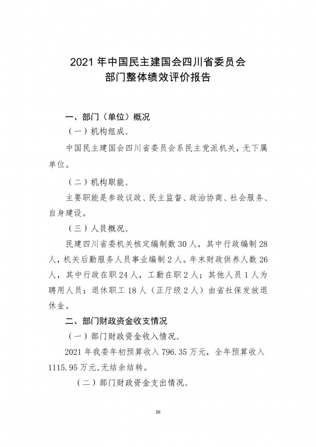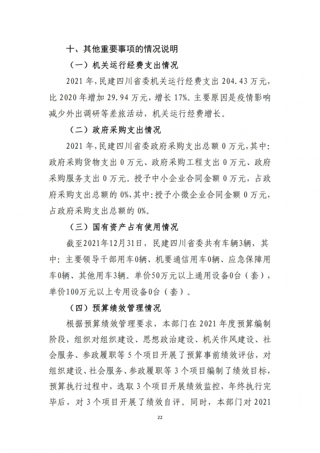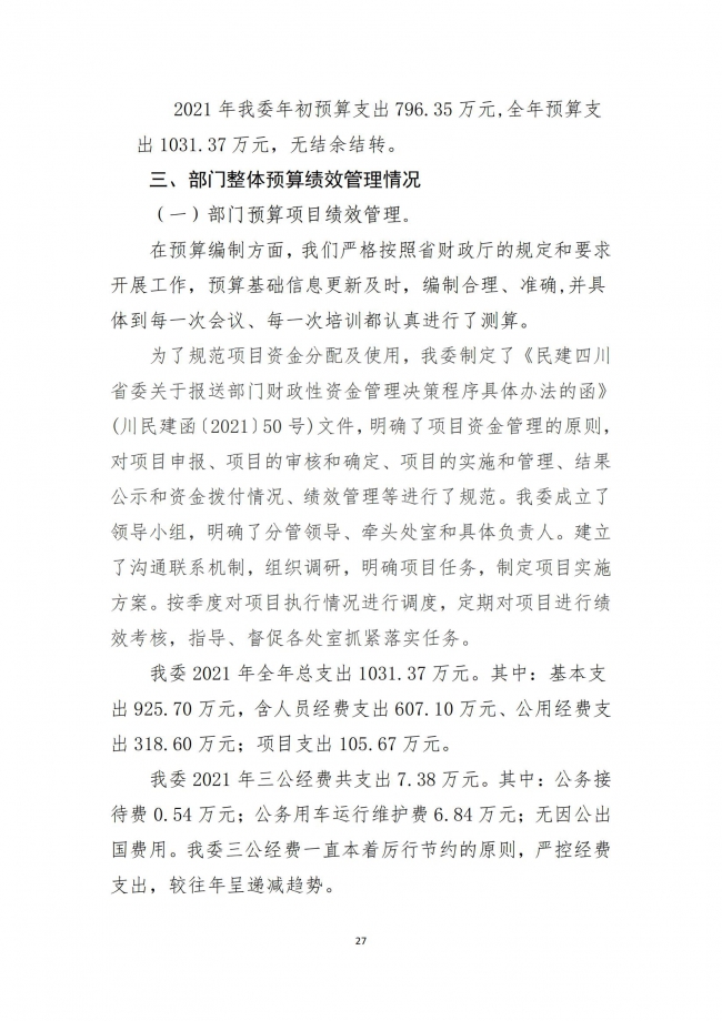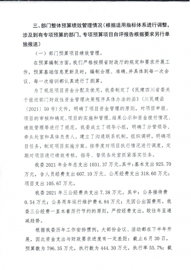 2021年度中国民主建国会四川省委员会部门决算及整体支出绩效评价报告