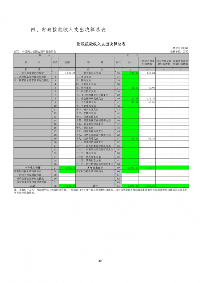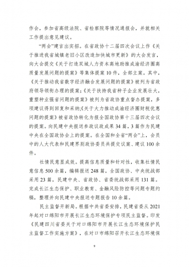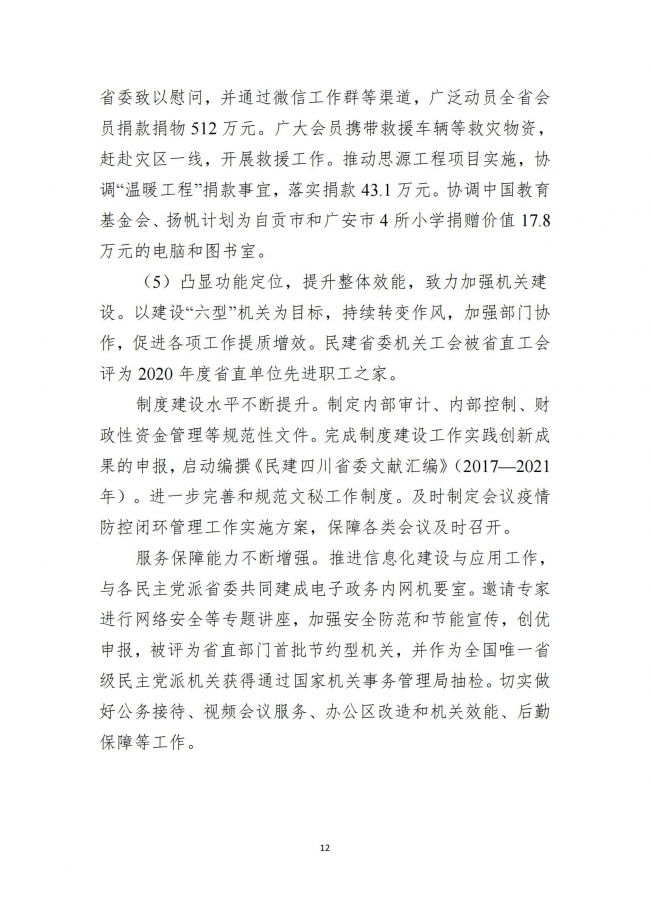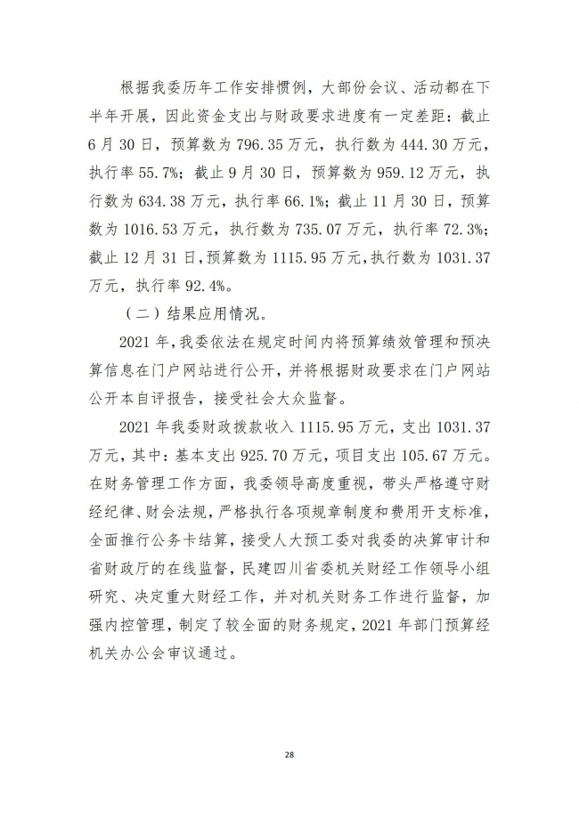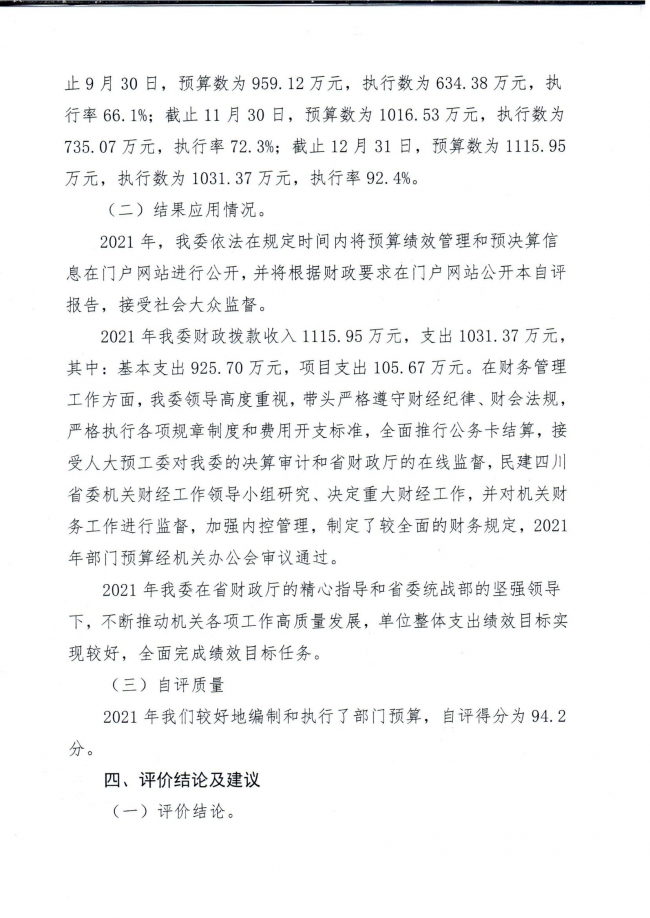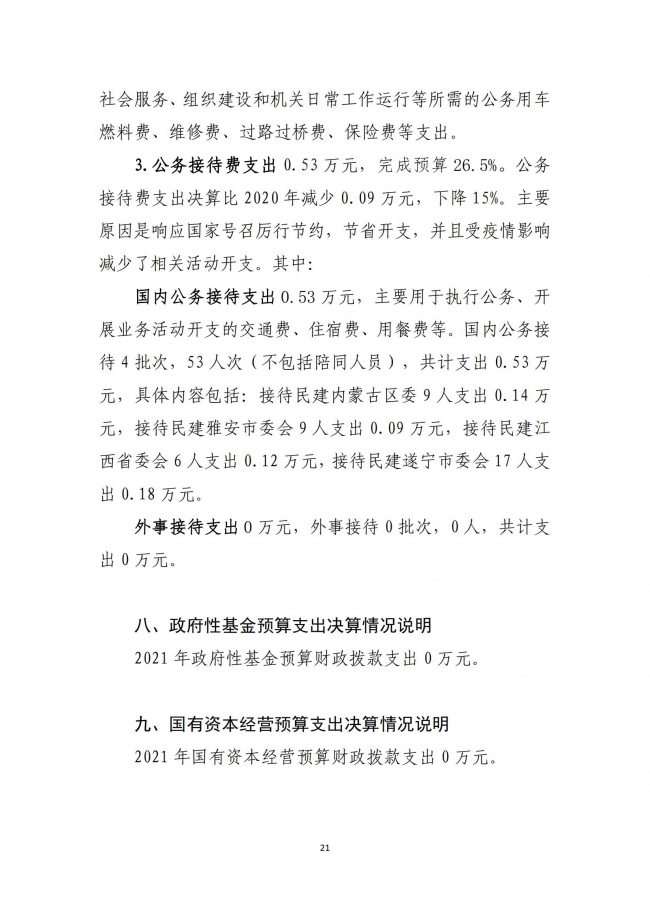 2021年度中国民主建国会四川省委员会部门决算及整体支出绩效评价报告