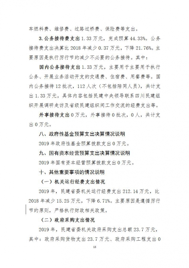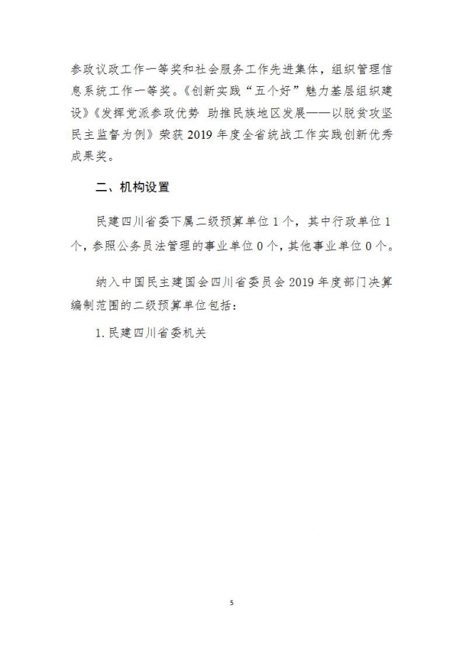 中国民主建国会四川省委员会2019年部门决算编制说明