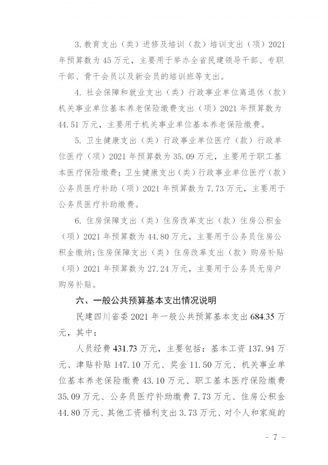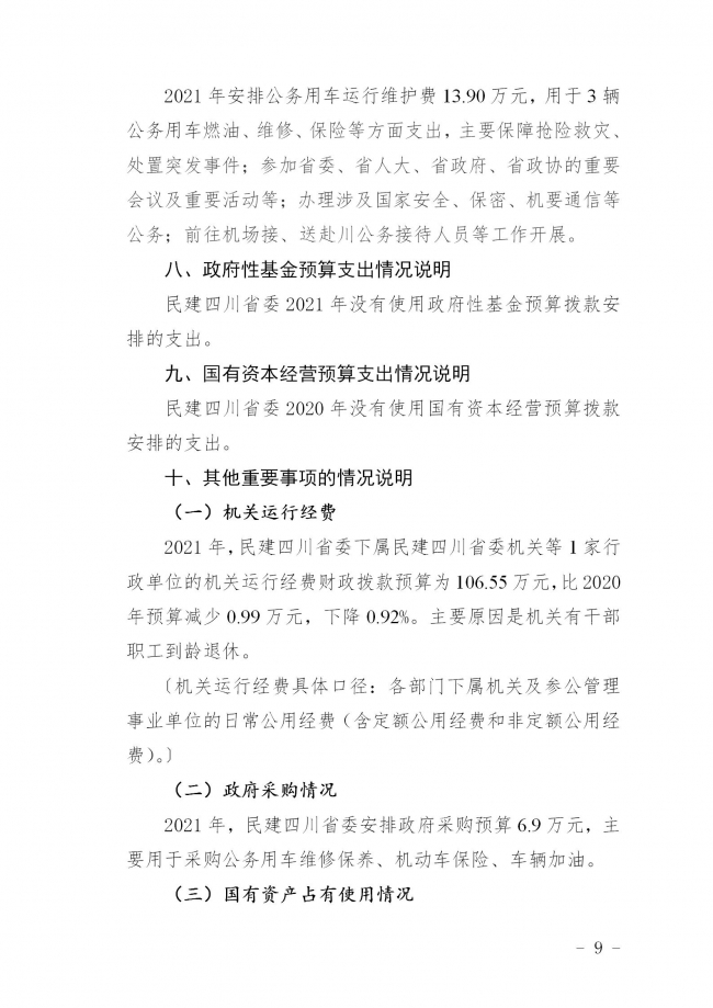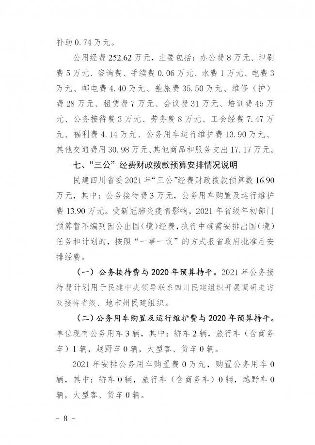 中国民主建国会四川省委员会2021年部门预算编制说明